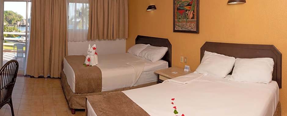 At Qualton Club Ixtapa All Inclusive, there are two types of rooms available. Both room types - Double Room with Sea View and Standard Double Room with Garden View - have the same occupancy, bed size, and room size. These rooms can accommodate 3 adults and 1 child, have two double beds, and are 538 sqft in size. Smoking is not allowed in both room types.