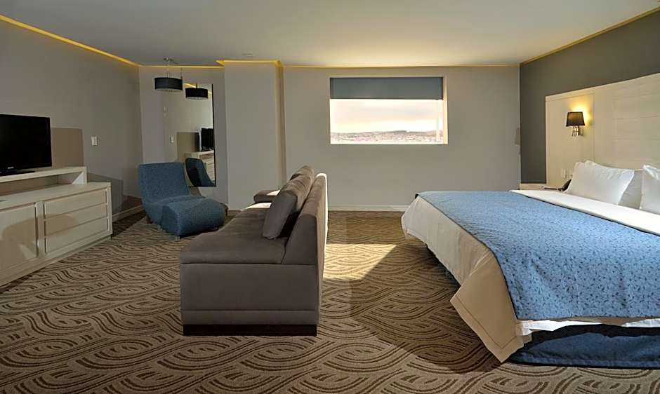 Modern and air-conditioned suite that includes heating, a flat-screen TV with cable channels, lap top safe, and a full bathroom with shower and free toiletries.