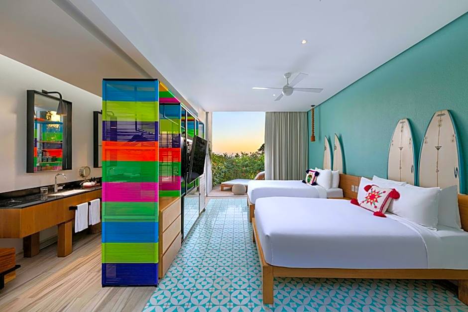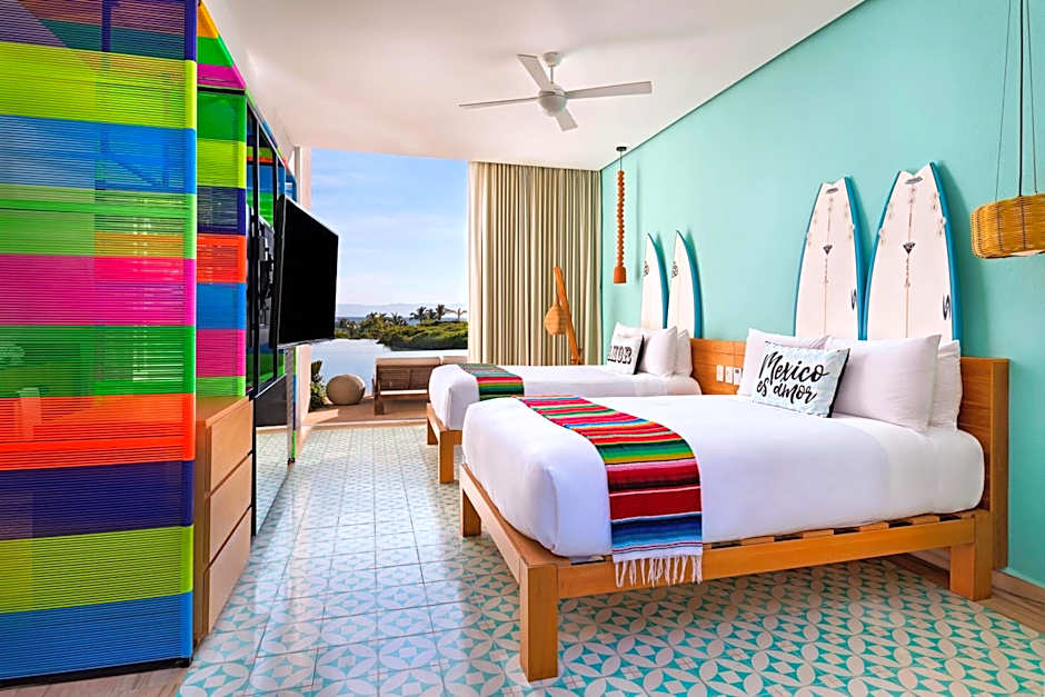 Choose from a variety of room types, each offering its own unique experience. Whether you prefer a jungle view, an ocean view, or a lake view, W Punta de Mita has the perfect accommodation for you. The spacious and comfortable double rooms feature either two double beds or a king-size bed, accommodating up to 3 adults and 3 children. Upgrade to the Fabulous Haven Suite or Oasis Suite for an even more luxurious stay, complete with a plunge pool and private beach cabana. Whichever room you choose, you'll be treated to breathtaking views and all the comforts you need for a memorable stay.