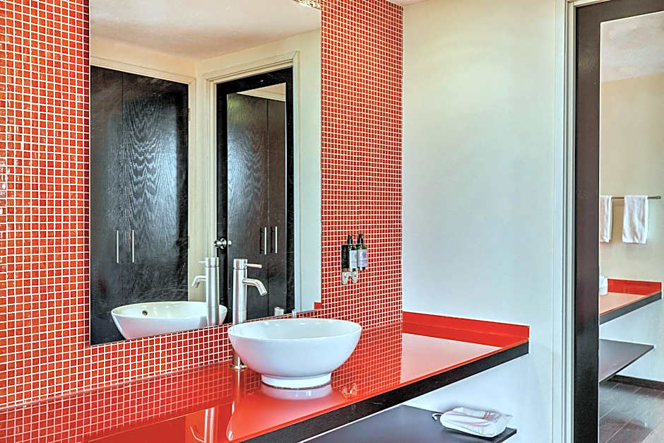 This room has a minimalist design and laminated floors. It comes with a 55-inch LCD TV, one telephone and work desk with high-speed wireless Internet. This room also offers a bathroom with tub, air conditioning, security safe and ironing kit.