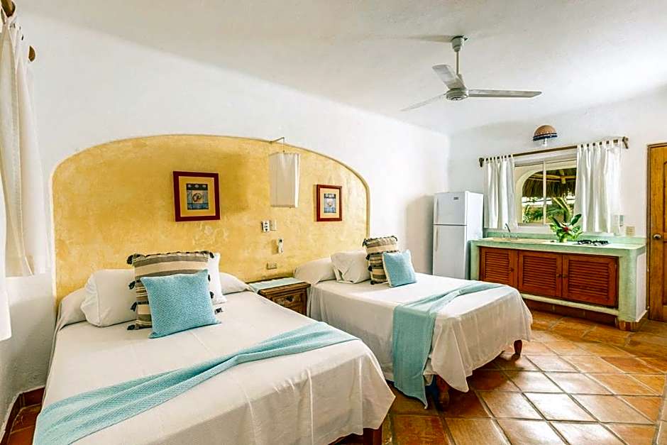 Between breezy décor and garden-flanked grounds, this Sayulita boutique escape invites leisurely days and relaxed nights. A private entrance opens into a calm niche where garden views set a tranquil mood after a day on the sand. Extra-long beds add a cozy, restful touch to the seaside stay.