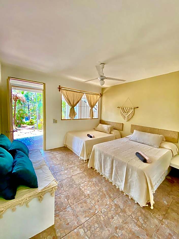 Located on the ground floor, this room provides easy access to the amenities of the accommodations without the need to climb stairs. The proximity to common areas such as the garden, shared lounge, and terrace allows you to enjoy the tranquil and relaxed atmosphere of Edén Escondido.