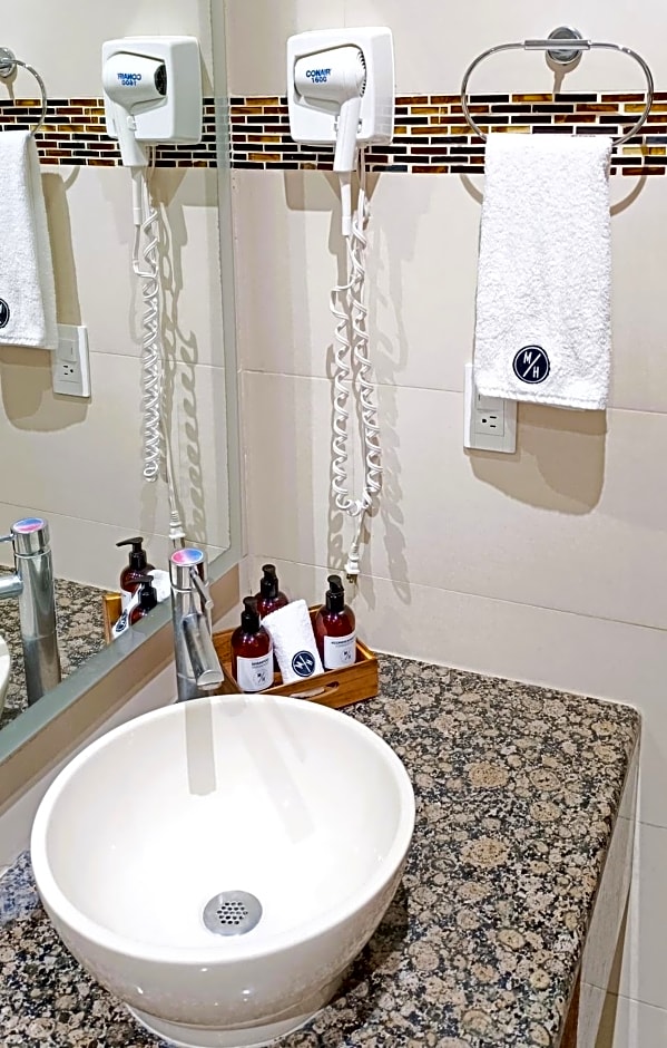 The private bathroom features a vanity mirror and a shower. Free toiletries are also available. Other amenities include a sewing kit, ironing facilities and shoe polisher.