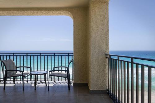 This room features air conditioning, a desk, fan, mini-bar and flat-screen cable or satellite TV. It also has a laptop safe. The bathroom has shower, bathrobes and hairdryer. There is a balcony with ocean views.