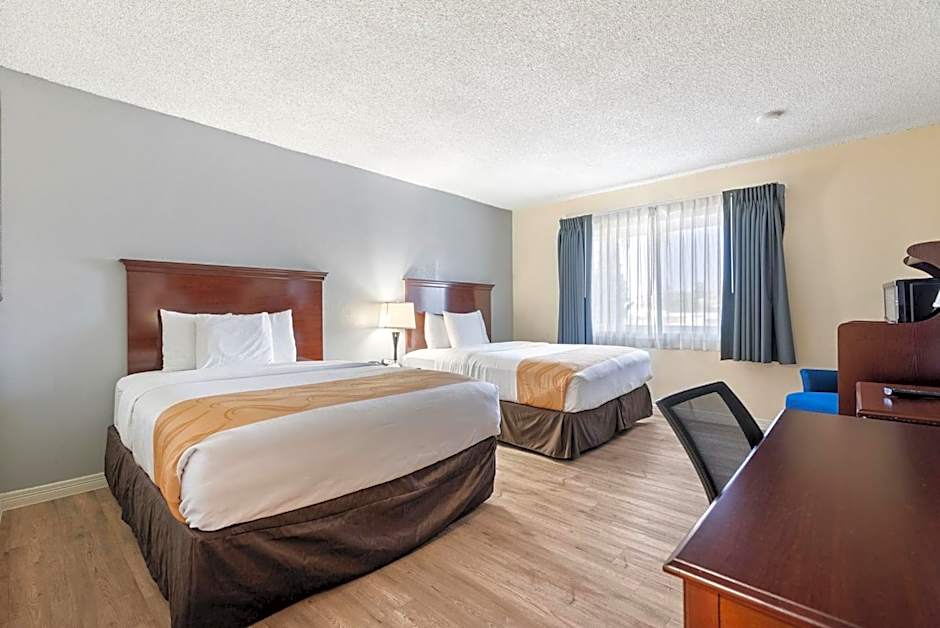 The Quality Hotel Americana Nogales offers a variety of room options including Queen Rooms with Two Queen Beds, Double Rooms with Two Double Beds, King Rooms, and a Large King Suite with Courtyard View. All rooms are non-smoking and have a size of 301 sqft. The Queen and Double Rooms can accommodate 4 adults and 3 children, while the King Rooms can accommodate 2 adults and 1 child. The Large King Suite can accommodate 3 adults.