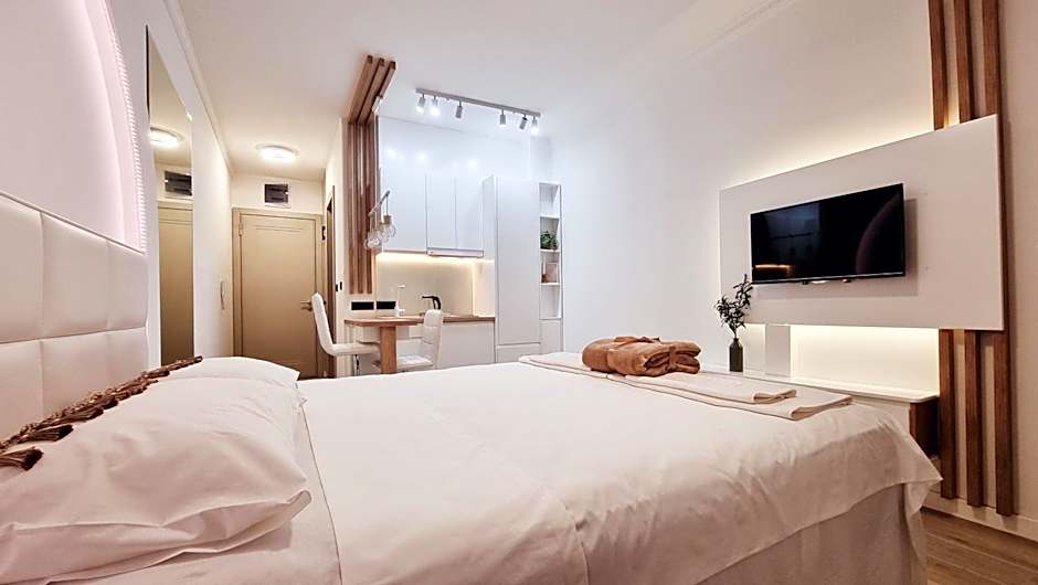 The studio offers a safe deposit box, parquet floors, as well as a private bathroom boasting a shower and a hairdryer. Guests can make meals in the kitchen that features a stovetop, a refrigerator, a dishwasher and kitchenware. The air-conditioned studio features a flat-screen TV, soundproof walls, a tea and coffee maker, a wardrobe as well as sea views. The unit has 1 bed.
