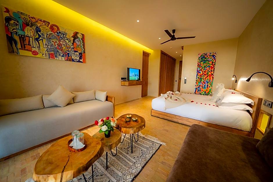 Welcome to BABERRIH Hôtel Hospitality Palaces & Resorts, your idyllic escape located just 13,7 mailia from the charming city center of Essaouira, Morocco. Situated at Moulay Bouzrktoune Tissa, this beachfront haven promises a delightful retreat filled with relaxation and adventure. Imagine waking up to stunning mountain views and enjoying a complimentary breakfast that energizes your day of exploration or lounging by the outdoor swimming pool that sparkles in the Moroccan sun.