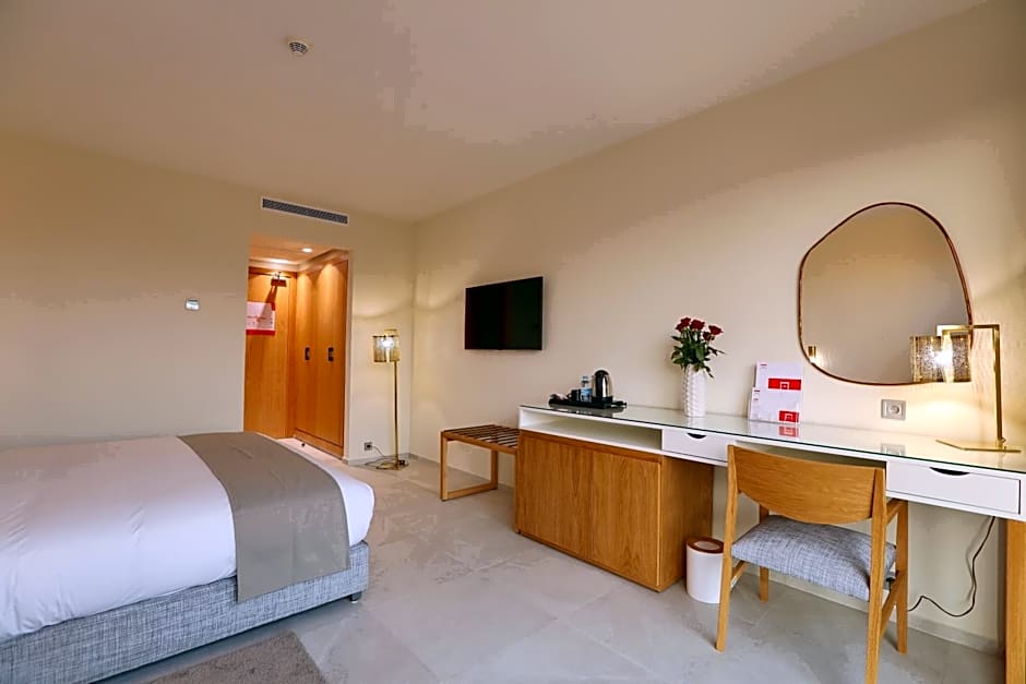 The hotel has a restaurant called LAYALI NOUR on site. The restaurant offers a family-friendly and modern ambiance, and serves Mediterranean, Middle Eastern, and Moroccan cuisines.