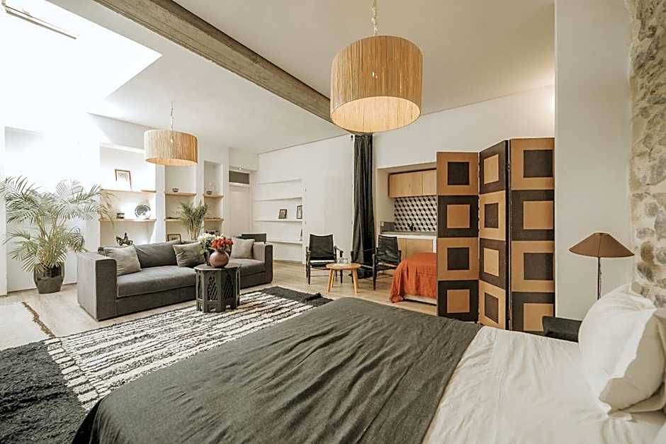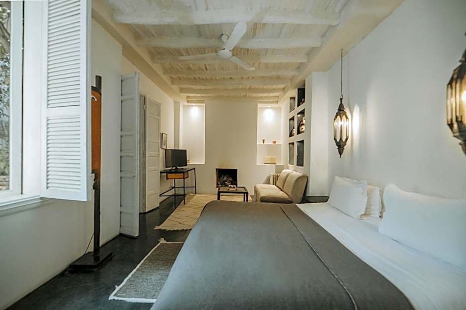 This spacious room offers a fireplace, a seating area and a large bathroom with tadelakt.