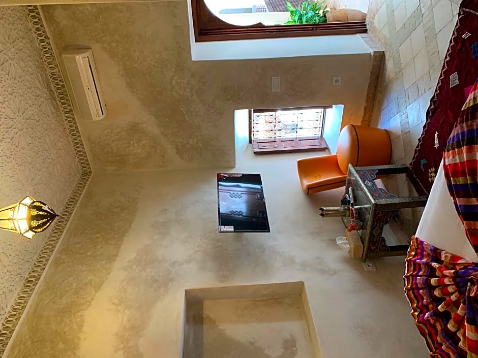 This room has an private bathroom with a shower and traditional Tadelakt walls.