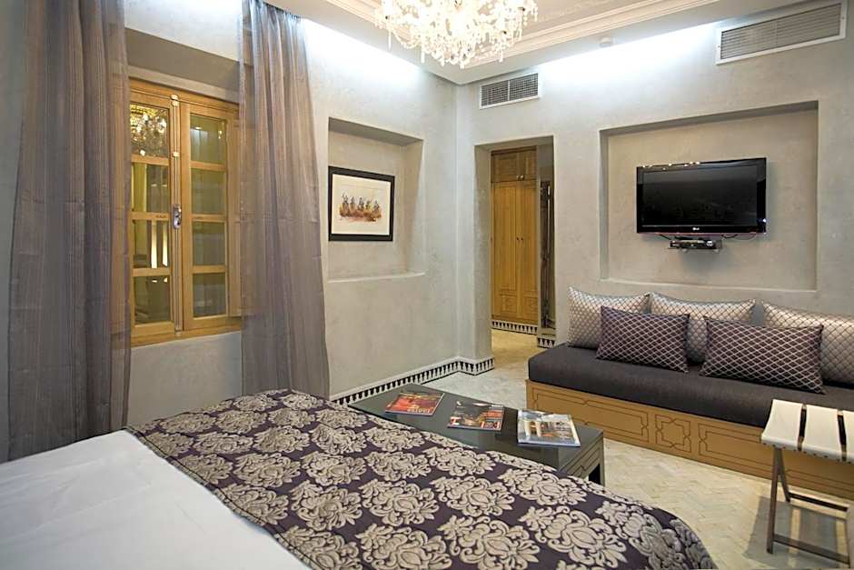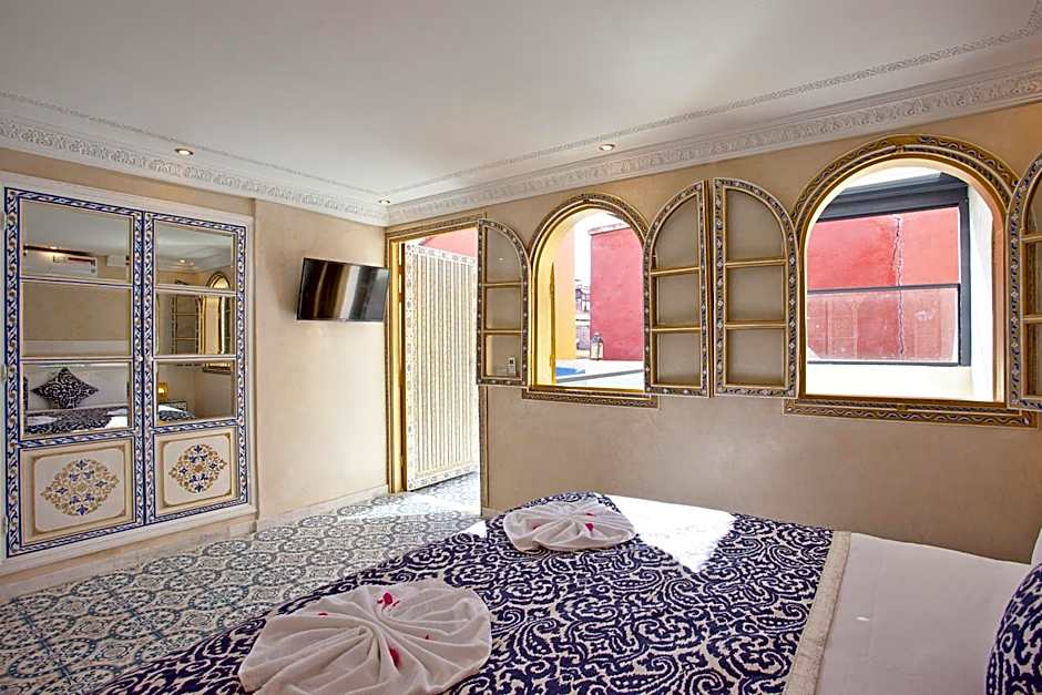Combining a Moroccan and contemporary decor, these larger rooms have views of the patio.