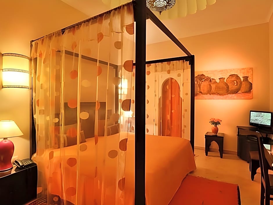 Combining a contemporary and Moroccan style, the rooms have an LCD TV.