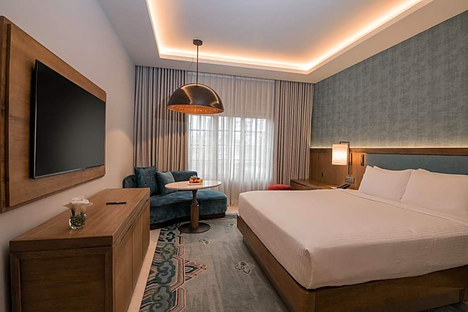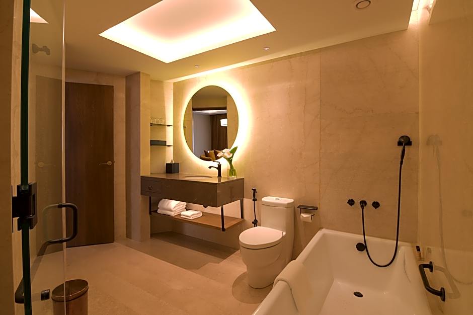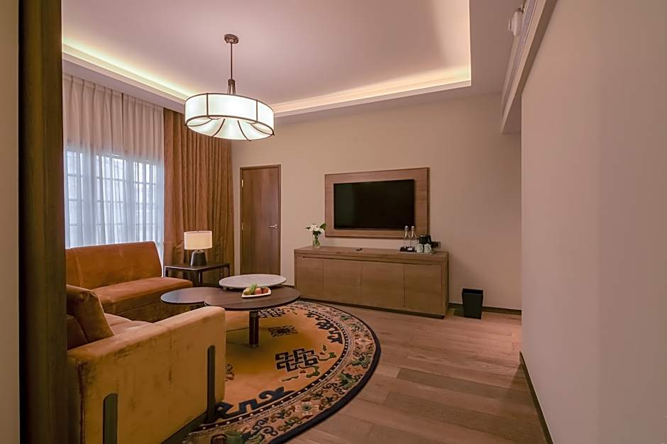 Designed with business traveler in mind, the Business Suite strikes the perfect balance between work and relaxation. The spacious living area is thoughtfully furnished with a plush sofa, a large television, and a functional table. The suite provides an inviting space where you can relax after a busy day. A stylish partition gracefully separates the living area from the bedroom, providing a sense of privacy and flexibility, allowing you to effortlessly switch between work and rest modes. The bedroom is a haven of tranquility, ensuring a restful night’s sleep with its cozy atmosphere and refined furnishings, creating an ideal environment for recharging after a busy day of meetings and travel. The Business Suite also features a sleek and elegant bathroom, further enhancing your experience of comfort and convenience. Guests enjoy access to the exclusive Club Lounge, where personalized service and serene surroundings elevate your stay. Every detail of the Business Suite is designed to create a smooth and enriching stay, offering both business and leisure travelers a true sanctuary where luxury, functionality, and comfort come together.