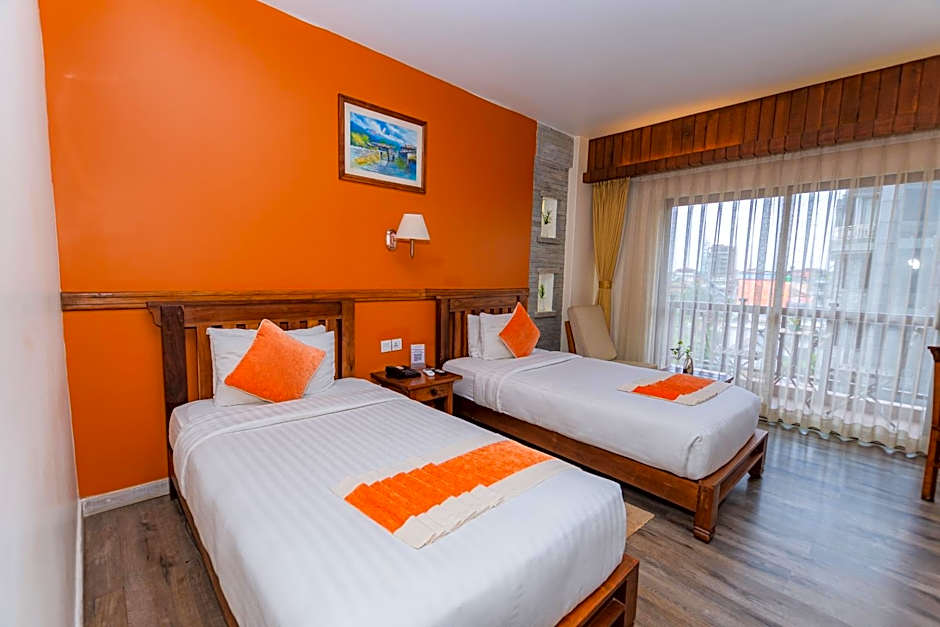 At Pokhara Batika hotel, there are two types of rooms available. The Deluxe Family Room can accommodate 3 adults and 2 children, with a Twin bed and a Queen size bed. The Deluxe King or Twins Room can accommodate 2 adults and 1 child, with a Queen size bed and two Twin beds. Both room types have a private balcony and offer either lake or mountain views. Smoking is not allowed in either room.