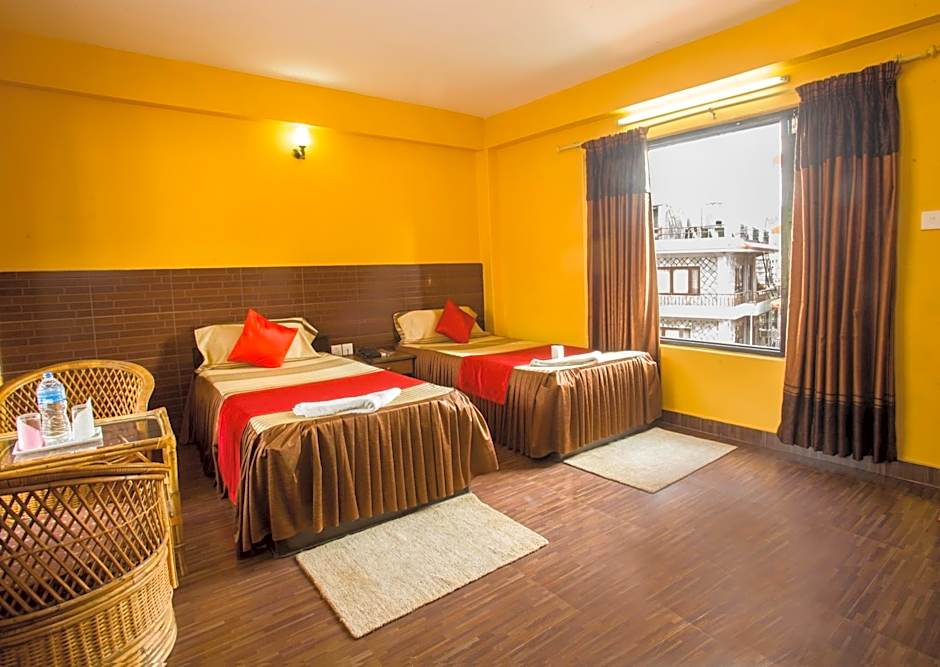 offers a variety of room types to accommodate different preferences and group sizes. The Budget Double or Twin Room is perfect for travelers on a budget, accommodating up to 3 adults with a twin bed and a double bed. If you're traveling with family or a larger group, the Deluxe Family Room is ideal, with 2 queen size beds and space for 4 adults. The Deluxe Double Room is designed for couples or solo travelers, offering a spacious and comfortable stay with a queen size bed. For those seeking spectacular lake views, the Deluxe Double or Twin Room with Lake View provides a picturesque setting with a king size bed and two twin beds. Whichever room type you choose, you can expect a cozy and inviting space to relax and unwind after a day of exploring Pokhara.