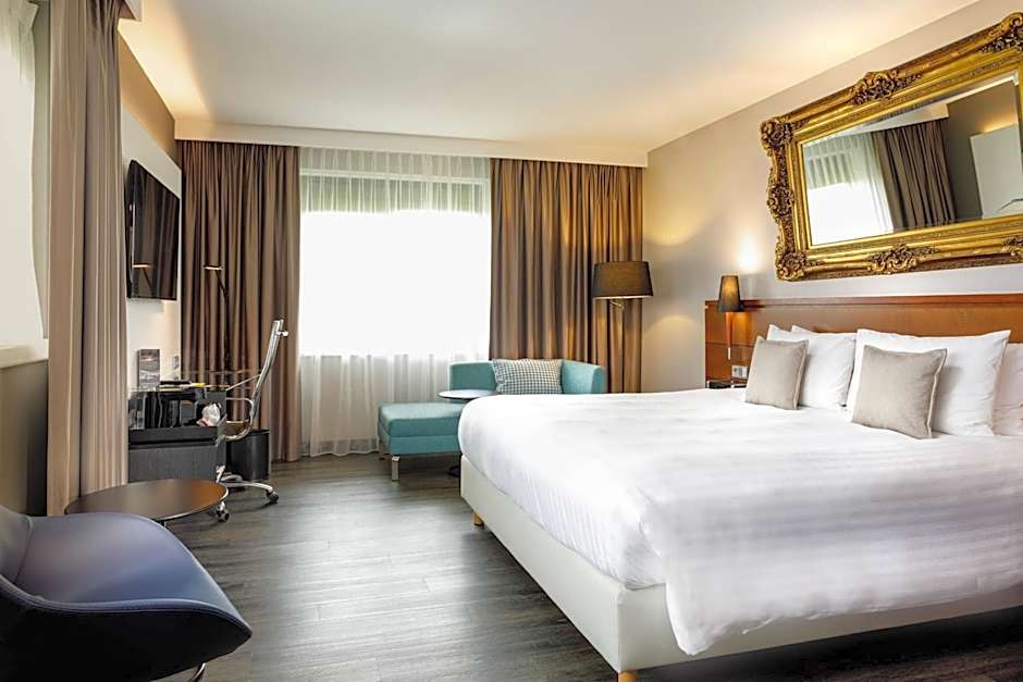 This room features King size bed, business desk with ergonomic chairs and USB plug connections, a 48 inch Smart TV with Guest Room Entertainment, Chromecast streaming on every device for Netflix, Spotify, Youtube and Momocast. Free WiFi is included. Extensive views of the green Haarlemmermeerse Bos surroundings.