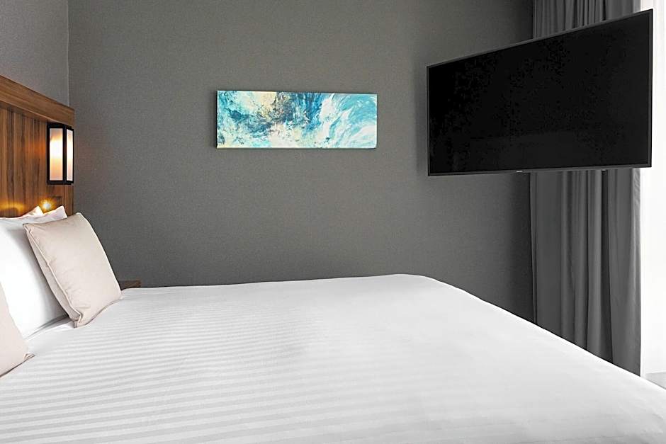 This double room includes a king size bed, air-conditioning and a bathroom with a modern walk-in shower. Tea/coffee making facilities, multiple USB sockets and a 55-inch Smart TV with Chromecast and in-room entertainment are available.