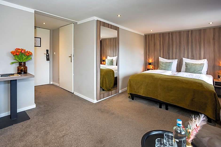 Our most spacious room features comfortable boxspring beds, flat-screen TV, seating area, coffee- and tea facilities, a bottle of water and a small fridge. All room have view on the river. Some rooms have a balcony.
