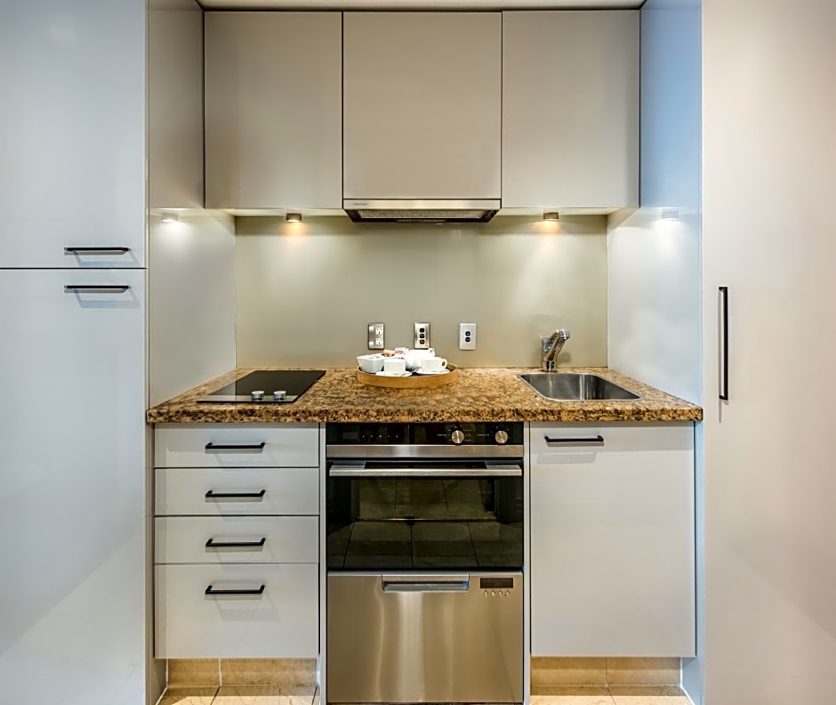 Guests staying in this open plan suite can wake up to views over the refreshing green of Albert Park. This suite has abundant space and natural light. WiFi, a Smart flat-screen TV and a queen-sized bed are provided and there is a kitchen to prepare your favorite snack.