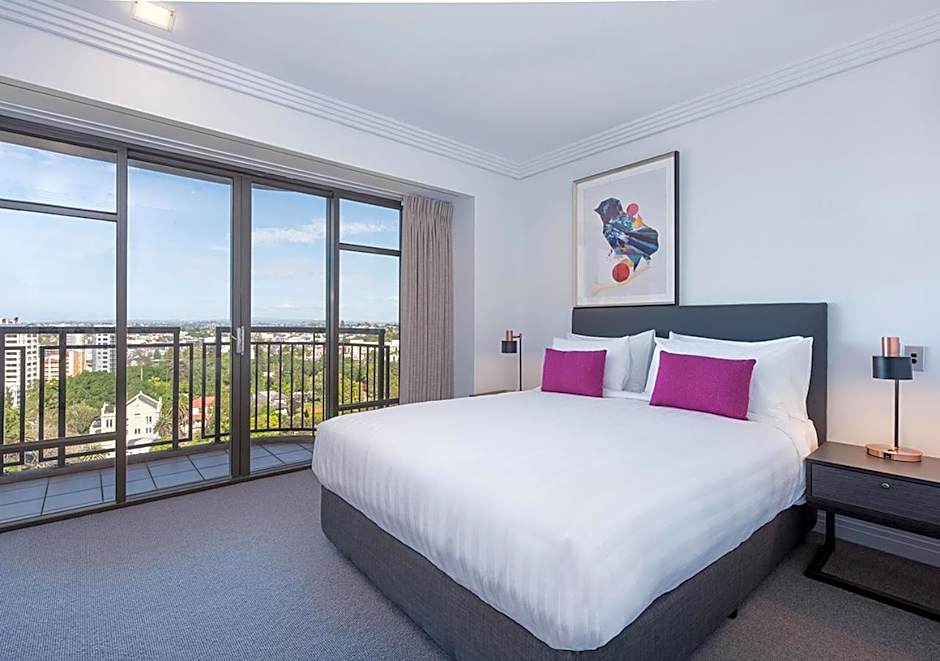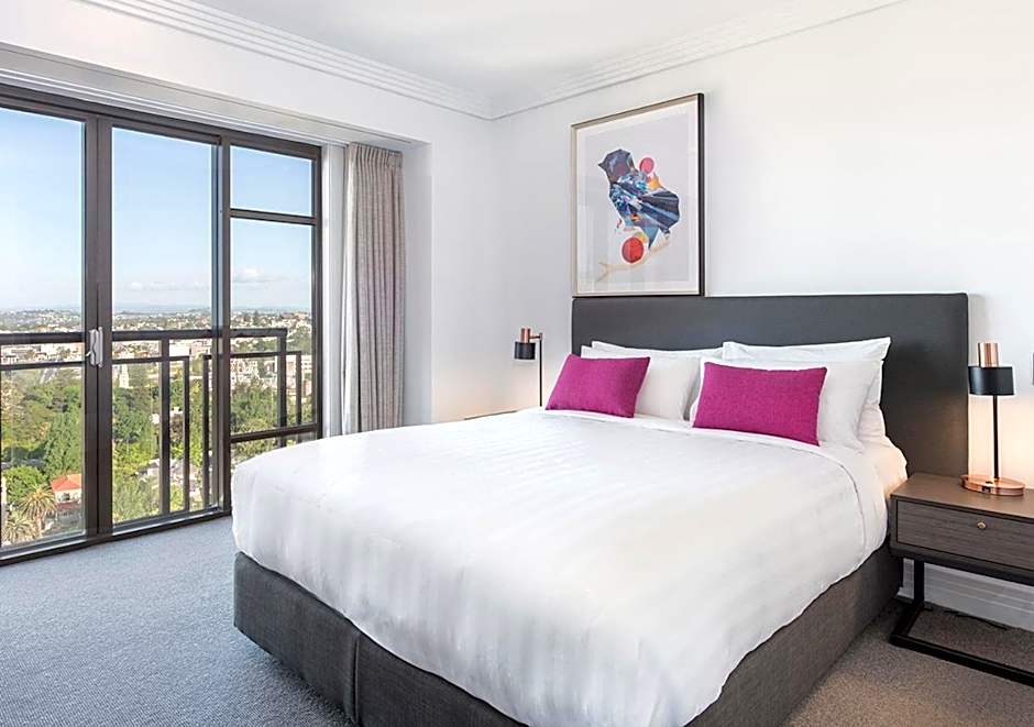 This 2-bedroom suite has a living area and views over Auckland skyline. There is a large refrigerator, in-room laundry and plenty of space.