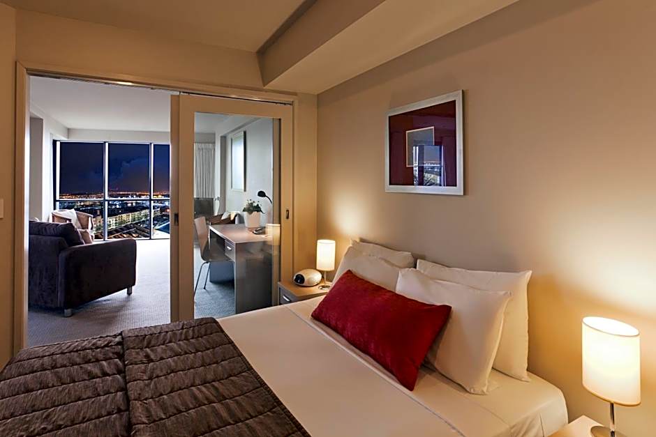 These spacious suites feature a separate lounge and bedroom, plus kitchenette facilities with dishwasher and microwave. This room is located on level 1, 2, or 3. It features views of the city, and does not offer harbor views.