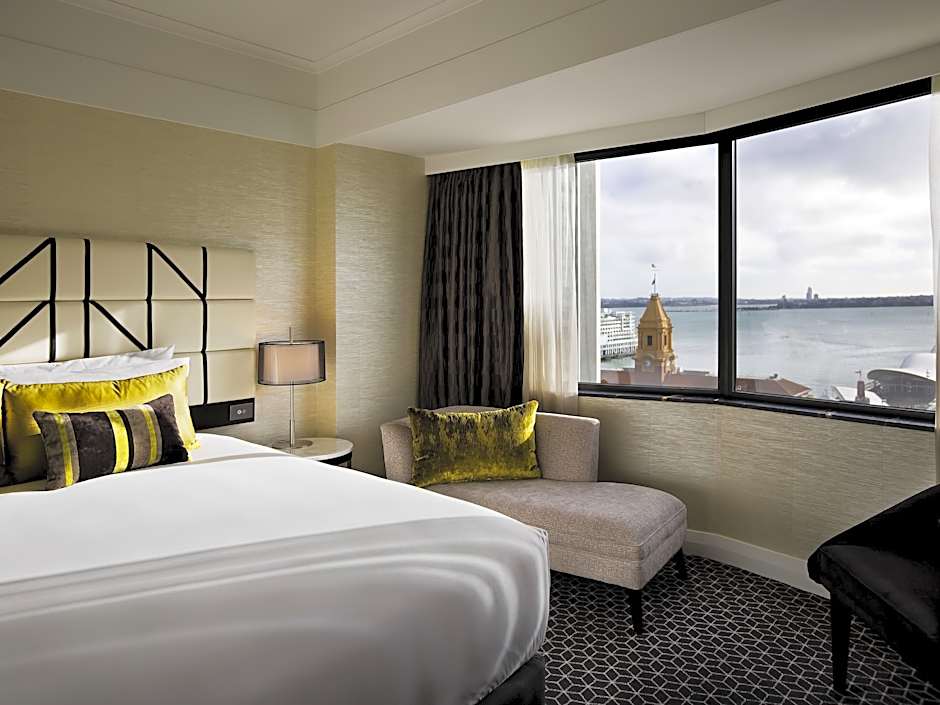 Located on the higher floors to allow for expansive views of Auckland’s Waitemata Harbor or city skyline, this spacious, elegantly appointed room has 2 queen-sized beds and an private bathroom with a rain shower and manuka honey based toiletries. There is a mini-bar, tea/coffee making facilities and a 42-inch Smart TV with 57 channels and Blu-tooth connectivity. Bathrobes and slippers are included.