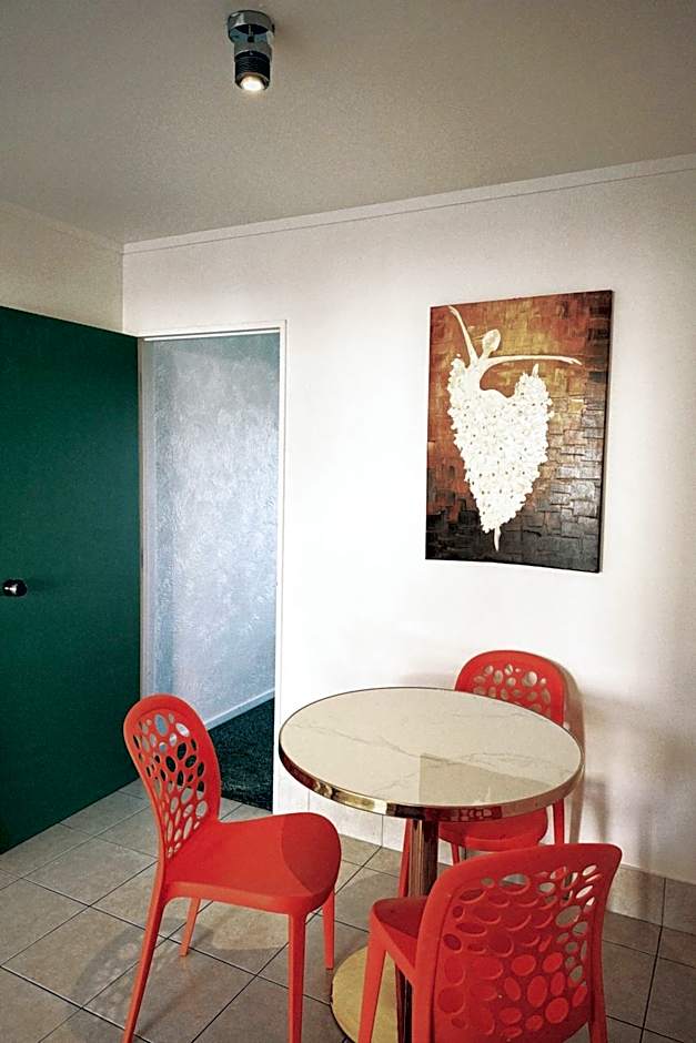 This room has 1 queen-sized bed and 1 single-sized bed. It also includes a bathroom, kitchenette, dining table, free on-site parking, a free airport shuttle service and free WiFi.