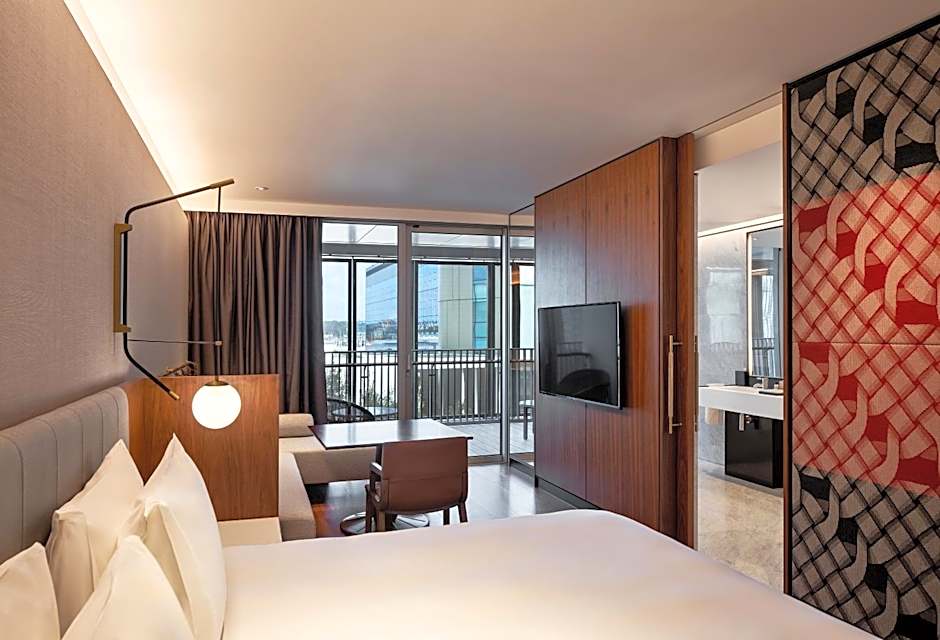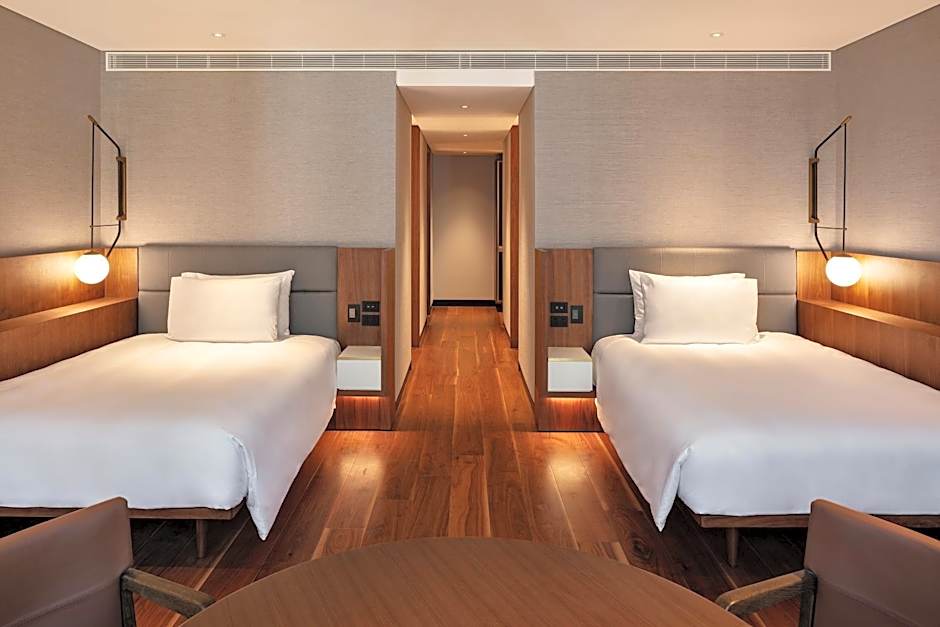 The hotel offers various types of rooms including Twin Rooms, Deluxe King Rooms, King Rooms with Rooftop Balcony, King Rooms with Harbor View, King Rooms with Balcony and Harbor View, and Suites. All rooms have a size ranging from 506 sqft to 1367 sqft. Smoking is not allowed in any of the rooms. The rooms can accommodate either 2 adults and 2 children or 3 adults and 2 children. The bed sizes are either Twin or King size beds.