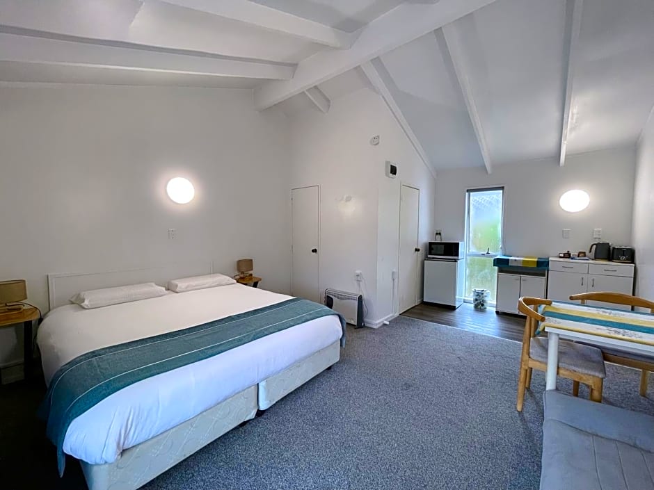 The Siesta Motel offers two types of rooms: Basic Studio and Studio with Kitchenette. Both rooms are studios with a size of 377 sqft and can accommodate 2 adults and 1 child. Smoking is not allowed in either room. The Basic Studio has a double bed, while the Studio with Kitchenette has a queen size bed.
