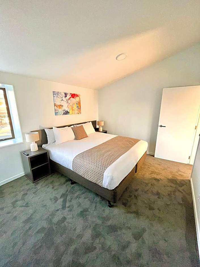 Our new Deluxe One Bedroom Family Apartment is a great option for small families or groups of 3. The room features one king bedroom with an private bathroom, and one extra single bed added into the spacious lounge area. The king bedroom can also be arranged as a twin on request. All of our rooms feature smart TVs, work desks, fridge/freezers, microwaves, kettles, and coffee table & chairs, as well as unlimited free high speed WIFI.