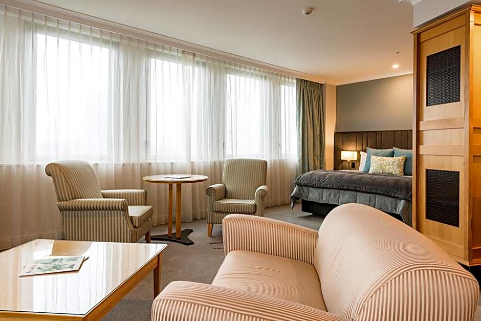 You can relax and unwind after a busy day in one the Superior King Room. These refurbished, air-conditioned rooms offer a king bed combined with luxurious linen as well as double glazed windows to ensure a restful night’s sleep. The modern private bathroom is equipped with a spacious walk-in shower featuring both standard and rain shower heads and complimentary Distinction toiletries. An armchair, a desk and work space, 55-inch flat screen Smart television with satellite channels and free unlimited WiFi is also offered.