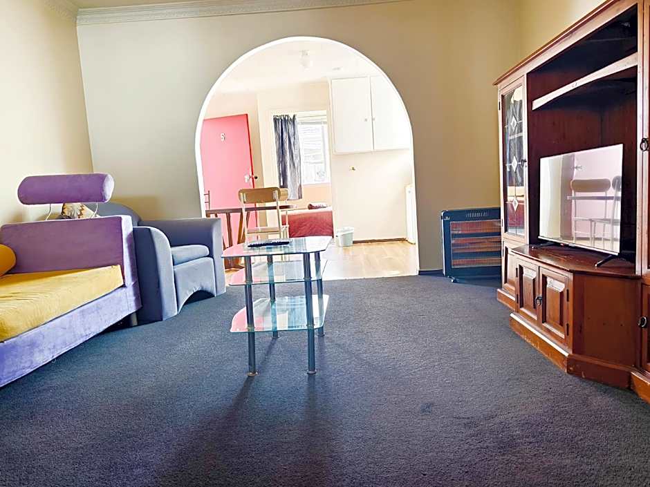 This apartment has one queen size bed in the living room and 2 single beds in the bedroom. It has full kitchen facilities and private showel and toilet. Flat screen TV and unlimited wifi. Free parking space available in front of the unit.