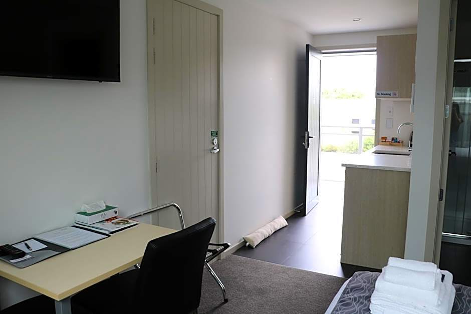 This spacious air-conditioned studio has a kitchenette with a fridge and microwave, a Smart TV, WiFi, a work desk and a seating area. Interconnecting options are available. This is the largest studio room in the motel complex. The bathroom is en suite and comes with a hairdryer and shower.