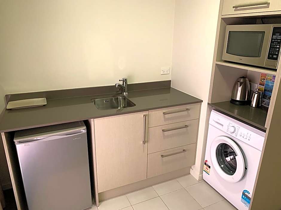 A variety of room types is available, from Studios to Deluxe Suites and multi-bedroom Apartments, including Studio (King) and Apartment Deluxe that can accommodate up to 10 adults and 6 children. Payment options include cash, Mastercard, Visa, Bankcard, and Eftpos, with on-site parking available at no extra cost.
