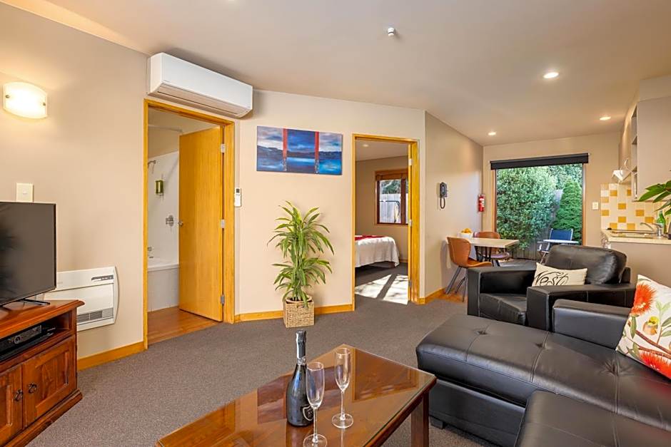 This apartment features a king bed, double corner spa bath, LCD TV with 8 channels, DVD player, heating, air conditioning, well-equipped kitchen, and a private courtyard.