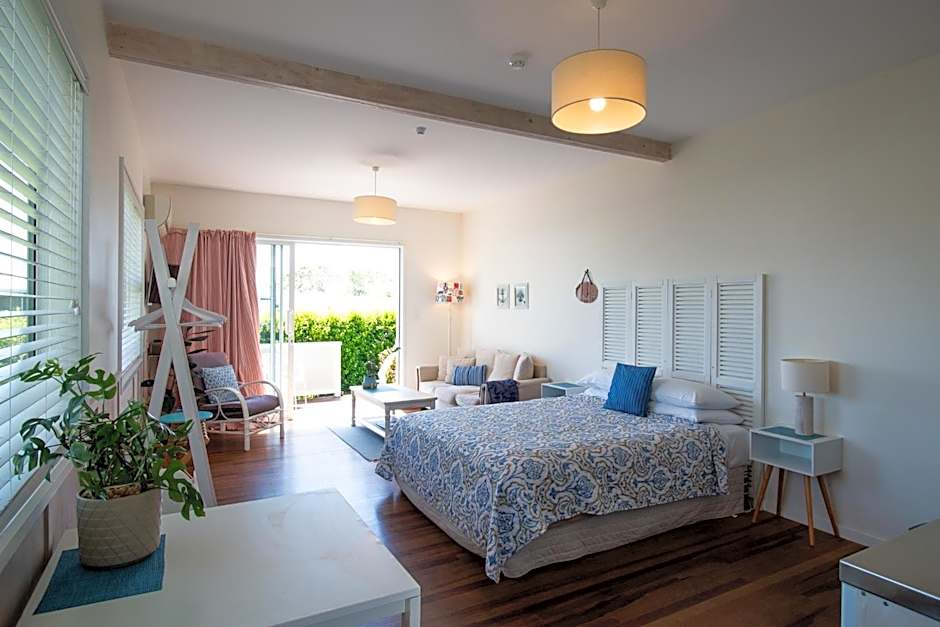 This fully self-contained studio has a queen-sized bed, kitchenette, bathroom, air-conditioning, a flat-screen TV, free WiFi and Marley music system.