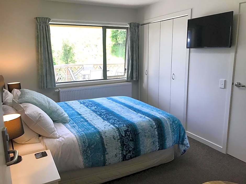 This large room has a private balcony with stunning views to the garden and across the Taieri plains towards the mountains. It has a queen bed with quality European linen, a sofa and a small kitchenette with a microwave, toaster, a refrigerator and tea/coffee making facilities. It also includes a walk-in wardrobe, which leads to the 2nd bedroom, which has 1 double bed and a shower room with complimentary toiletries. A TV with free satellite channels and free WiFi are provided.