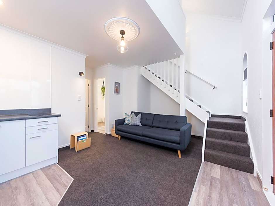 Beautifully designed two-bedroom, two-story suite with everything you need for your stay. 61 sq.m internal. Kitchenette with stove hobs, fridge, toaster, microwave and kettle. Closed off bedroom with two single beds downstairs. Upstairs bedroom with a queen bed and a single bed. Dining table, three seater couch. Bathroom with shower and seperate toilet. Complimentary WiFi, Car park, Air Con, Smart TV with Sky.