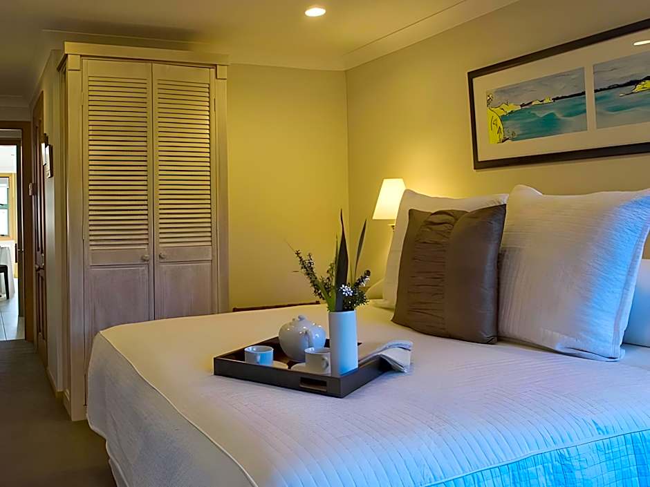 Cliff Edge two bedroom apartment provides guests with everything you can expect from a luxury experience. The apartment consists of a large open lounge, dining and kitchen area, a master bedroom with Balinese 4-poster bed with private bathroom, and the second bedroom with super king split system bed and separate bathroom.