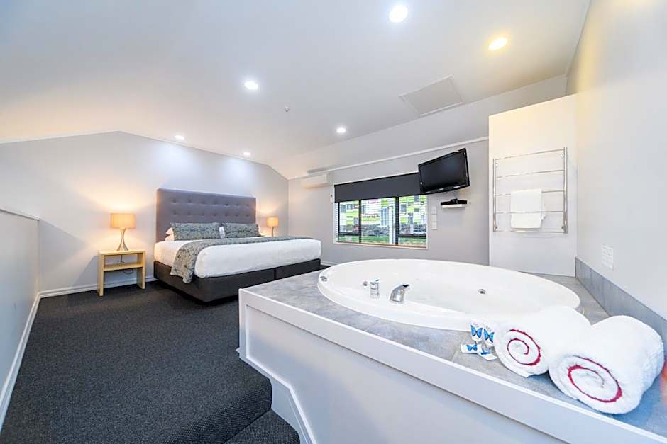 Newly refurbished Spa Studio suites are located downstairs away from the road. A very spacious open plan suite with a super king bed, a fresh self fill spa pool, a workstation desk, an private bathroom and a kitchenette and relaxing recliner chairs. You can even relax and watch TV while soaking in the spa.