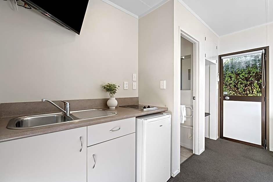 This heated motel-style apartment features a patio and a kitchenette with a stove, oven, microwave and fridge. It has a flat-screen TV with cable channels, a dining area and a private bathroom.