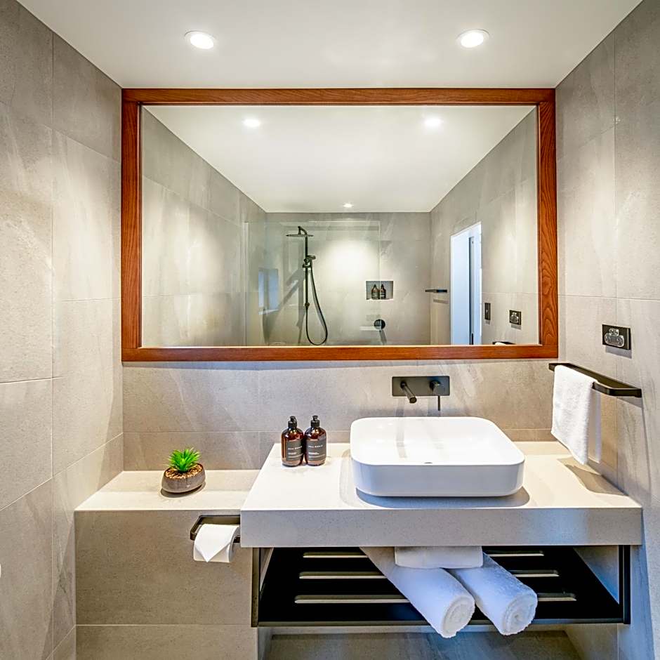 This room features a private terrace and views of the Remarkables. It offers an en suite, Premium super king-size bed and a contemporary design, with wall-to wall-windows. Also included is a semi-private outdoor seating area.