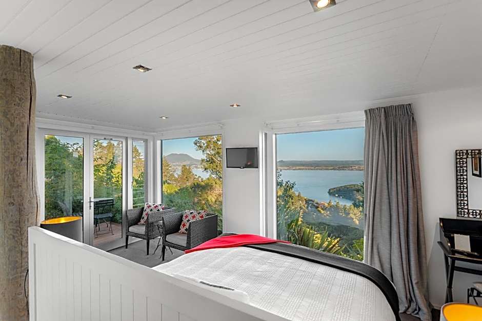 Welcome to the stunning Acacia Cliffs Lodge, a luxurious 5-star bed and breakfast nestled in the heart of picturesque Taupo, New Zealand. Located just 3.9mi from the lively city center and perched on 133 Mapara Road, Acacia Bay, this enchanting retreat guarantees you a getaway brimming with relaxation and adventure. With prices starting from $428, you can treat yourself to an unforgettable stay while basking in breathtaking lake and mountain views.