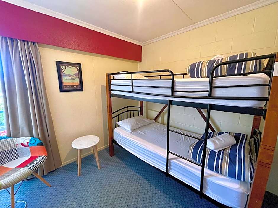 The Te Anau Lakefront Backpackers offers a variety of room types including Twin, Double, Quadruple, and Dormitory options. Occupancy ranges from single bed accommodations to rooms accommodating up to four adults. All rooms are non-smoking with bed sizes varying from bunk beds to queen size beds and room sizes from 65 sqft to 269 sqft.