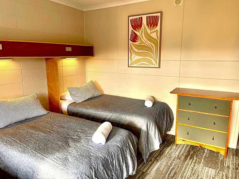 Private room with 2 single beds (bunks). Linen and towels are provided, and blankets also available.