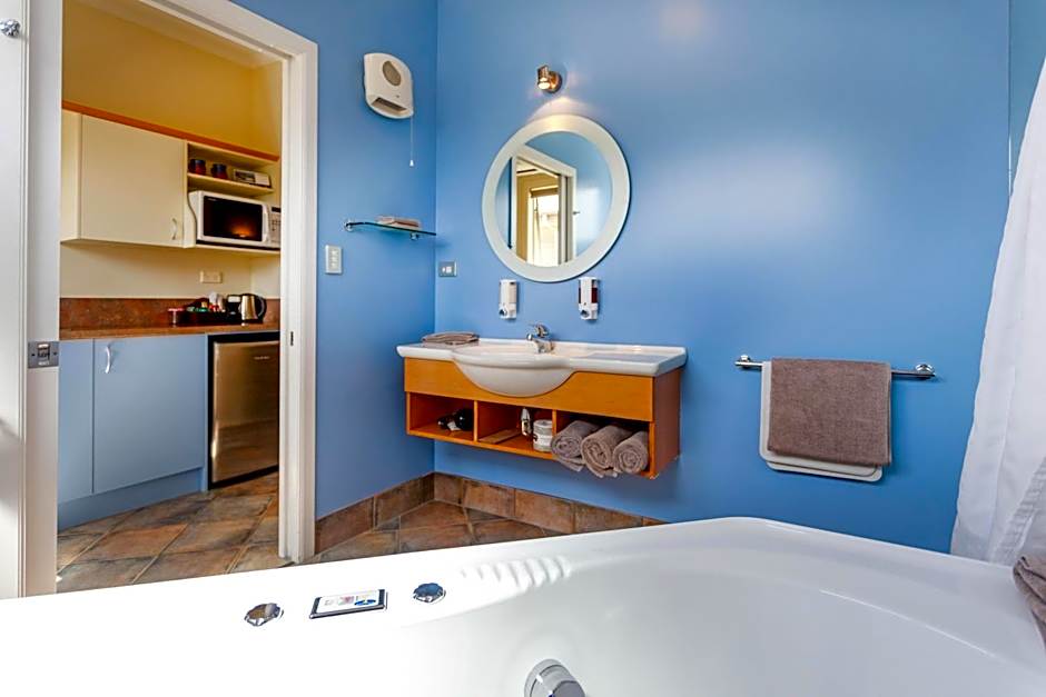 This studio features a flat-screen TV, radio and fan. The private bathroom comes with a spa bath, shower and hairdryer. The kitchen features a fridge and toaster.
