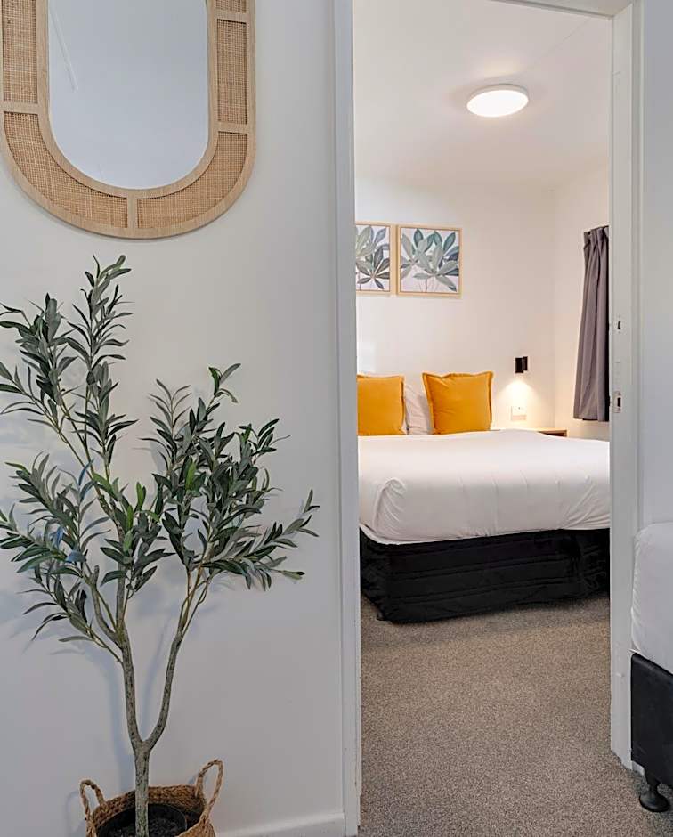 Archway Motels & Chalets offers a range of room types, including Two Bedroom Apartments, Twin Studios, and Three Bedroom Apartments. None of the rooms allow smoking. The Two Bedroom Apartment accommodates 5 adults and 3 children, with 1 King size bed and 3 Twin beds. The Twin Studio accommodates 3 adults and 2 children, with 1 Twin bed and 1 King size bed. The Three Bedroom Apartment accommodates 6 adults and 4 children, with 4 Twin beds and 1 King size bed.