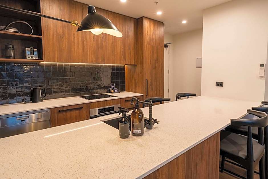Guests can make meals in the kitchen that is equipped with a stovetop, a refrigerator, a dishwasher and kitchenware. The spacious suite provides air conditioning, a washing machine, a balcony with city views as well as a private bathroom featuring a shower.