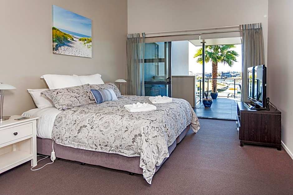 This luxurious deluxe suite provides views of the marina and mountain range from a private balcony. It offers a fully equipped kitchen, a BBQ, laundry facilities, a walk-in wardrobe and an private bathroom.