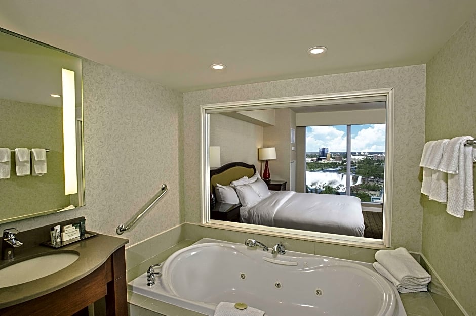 De opwinding van Niagara Falls is slechts een fluistering verwijderd, en er is niets dat te vergelijken is met het zich installeren voor de nacht in het Hilton Niagara Falls/Fallsview Hotel and Suites. Kies uit een heerlijk aanbod aan kamertypes die in al je wensen voorzien, of je nu een romantisch stel bent op zoek naar een knus toevluchtsoord of een gezin dat klaar is voor avontuur. Ruimte nodig? Bekijk de royale Two-Bedroom Deluxe Suites, perfect voor gezinnen met volop ruimte om te spelen. Voor wie zich een beetje wil verwennen, kies je een suite met bubbelbad die de toon zet om te ontspannen na een dag vol verkenning. Met zowel uitzicht op de stad als op de watervallen word je vanaf het moment dat je wakker wordt geïnspireerd door de omgeving.